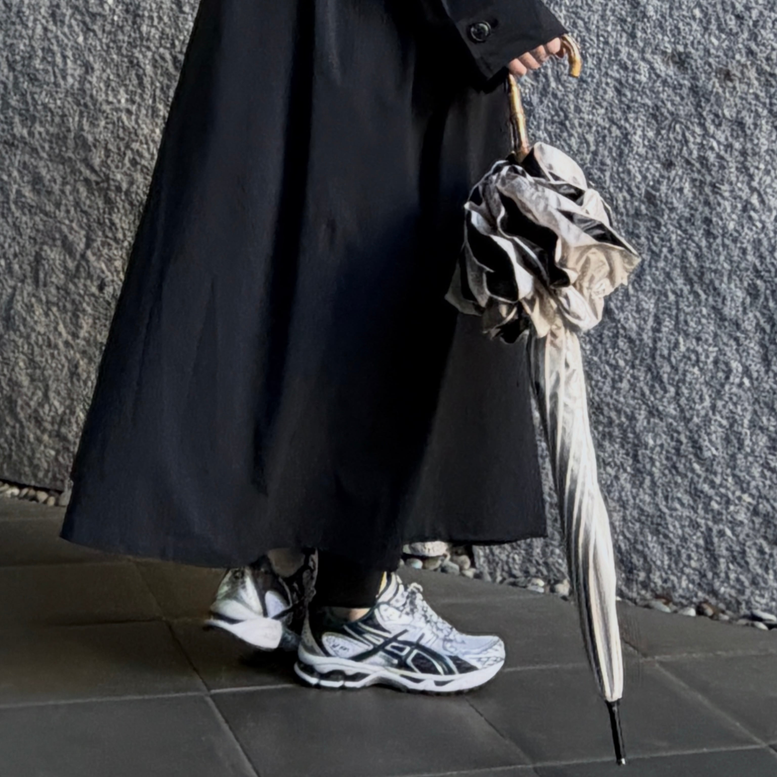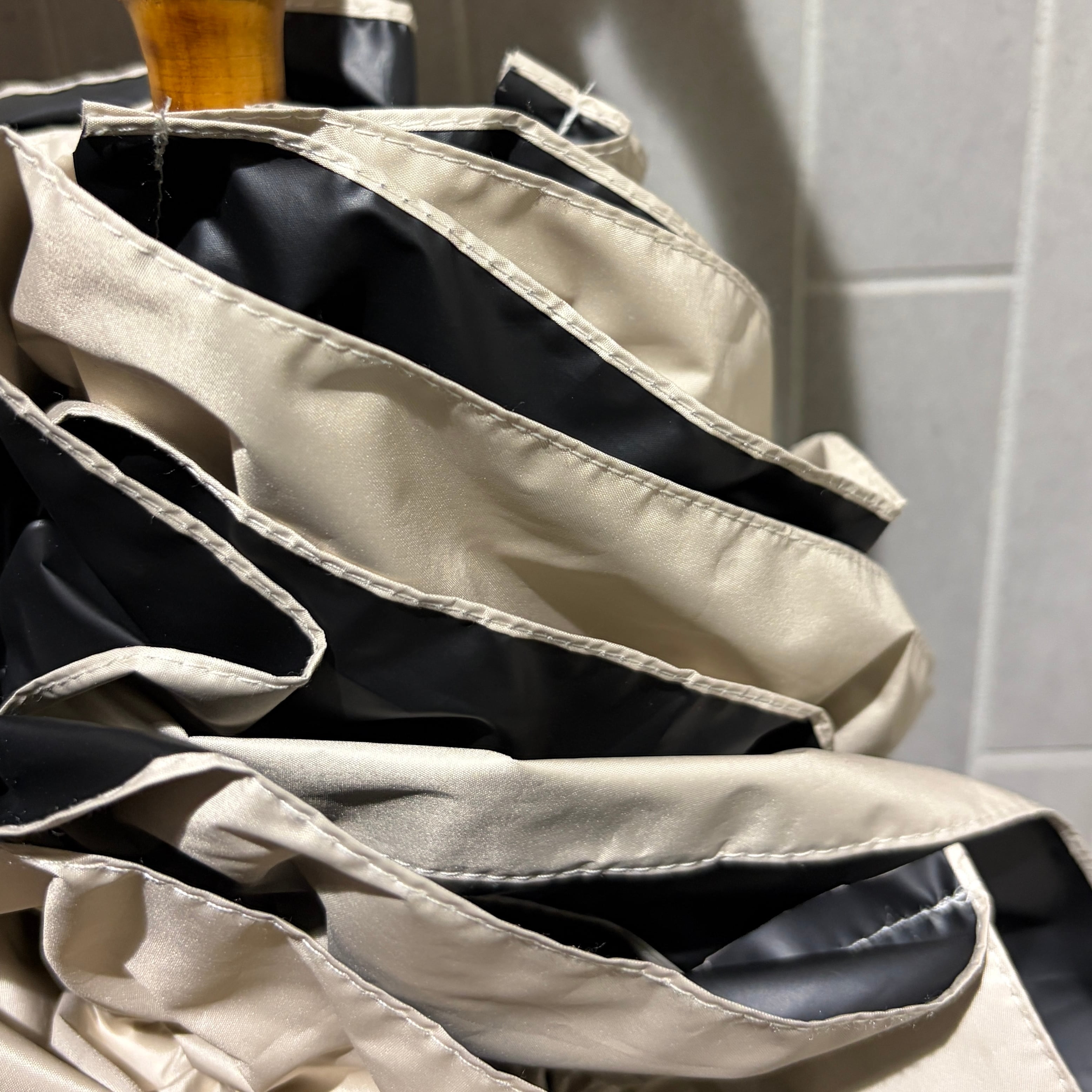 ハンドル部分は天然素材の寒竹を使用しているため、個体差がございますことをご了承ください。また、防水スプレーのご使用はシミとなる可能性がございますのでご注意ください。